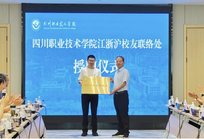 在大家共同见证下,现场举行了庄重的授牌仪式。张生向江浙沪校友联络处联络员授予“四川职业技术学院江浙沪校友联络处”牌匾。江浙沪校友联络处是学校设立的第一个联络处,是学校健全校友网络、强化区域联结的关键一步,是紧密连接母校与长三角校友的重要纽带。