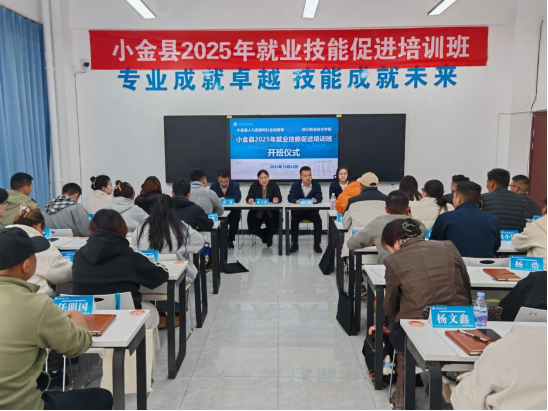 10月23日,由阿坝州小金县人社局联合我校共同举办的“小金县2025年就业技能促进培训班”在县公共实训基地隆重开班,标志着学校与小金县在人才技能培训方面开启校地合作新篇章。学校党政办公室主任郭鹏、继续教育学院培训部主任谭一心、小金县就业服务中心主任朱文萍、小金县退役军人服务中心主任余琴等出席开班仪式。
